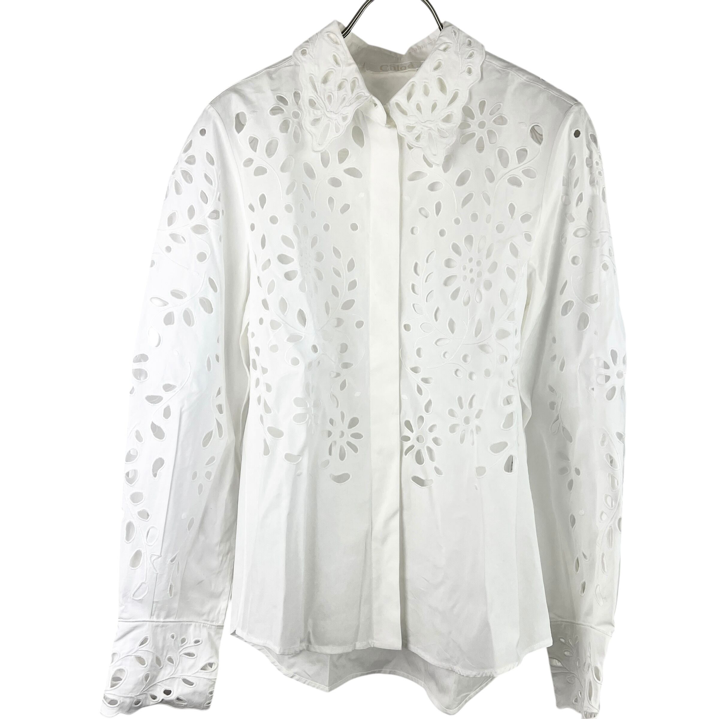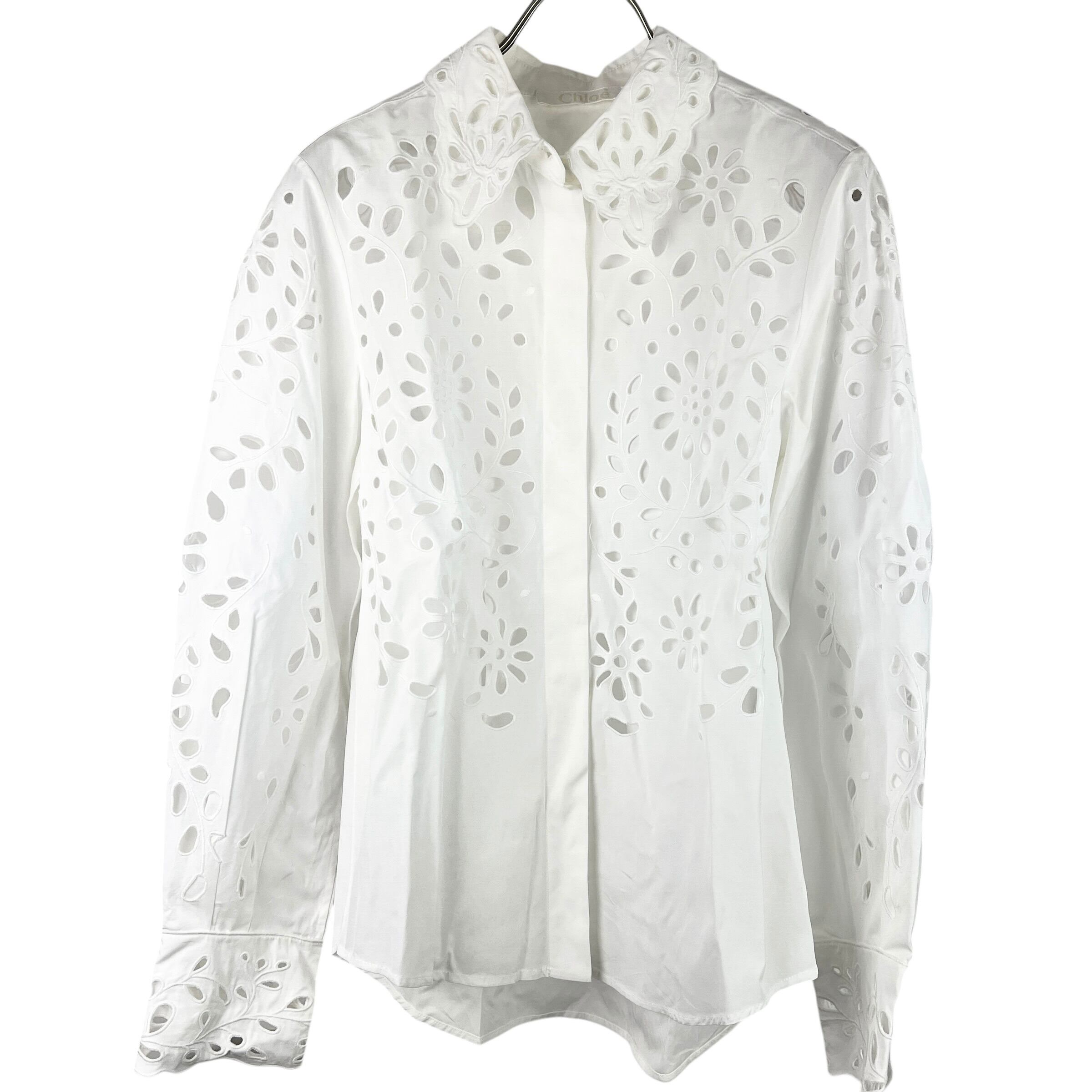 Chloe (クロエ) Seethrough Lace Longsleeve Shirt (white)