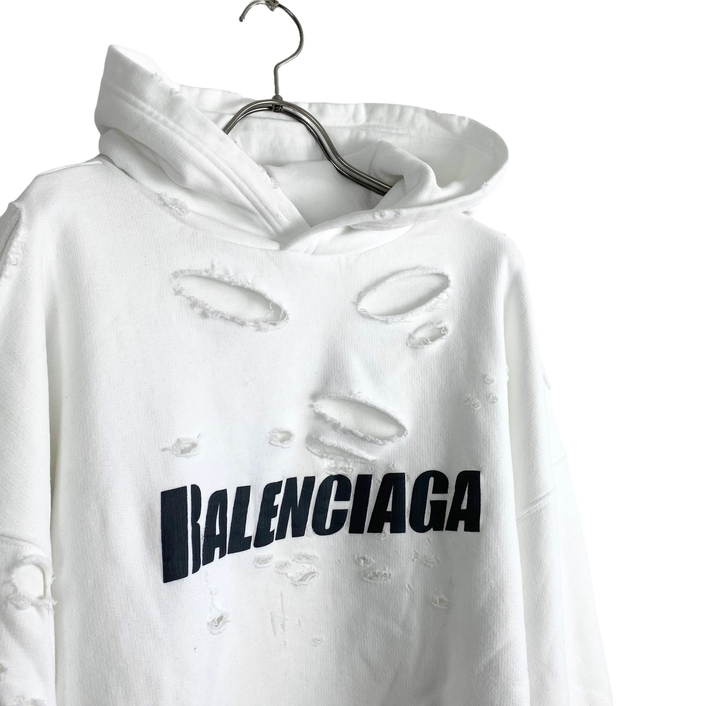 BALENCIAGA(バレンシアガ) CAPS DESTROYED HOODIE (white)