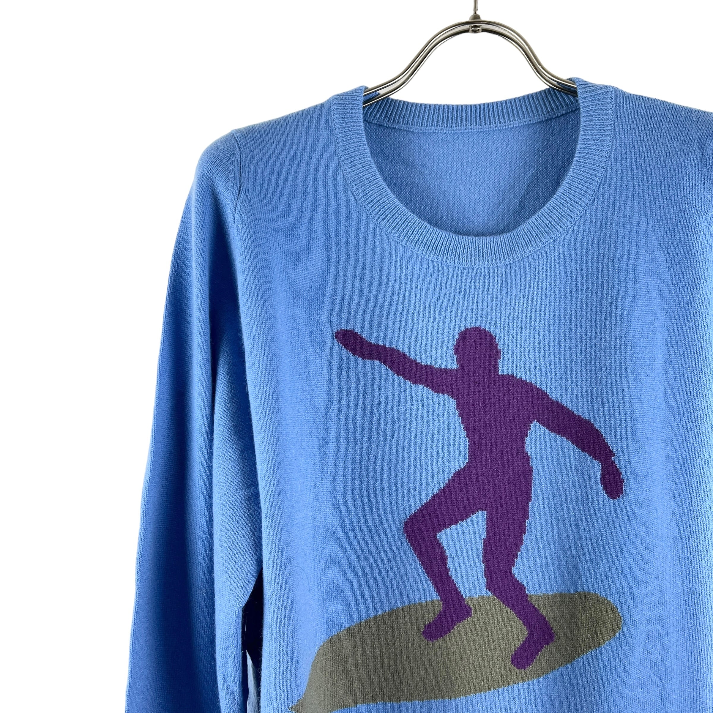 Lucien Pellat-Finet(ルシアン ペラフィネ)Surf Pattern Cashmere Knit Longsleeve T Shirt (blue)