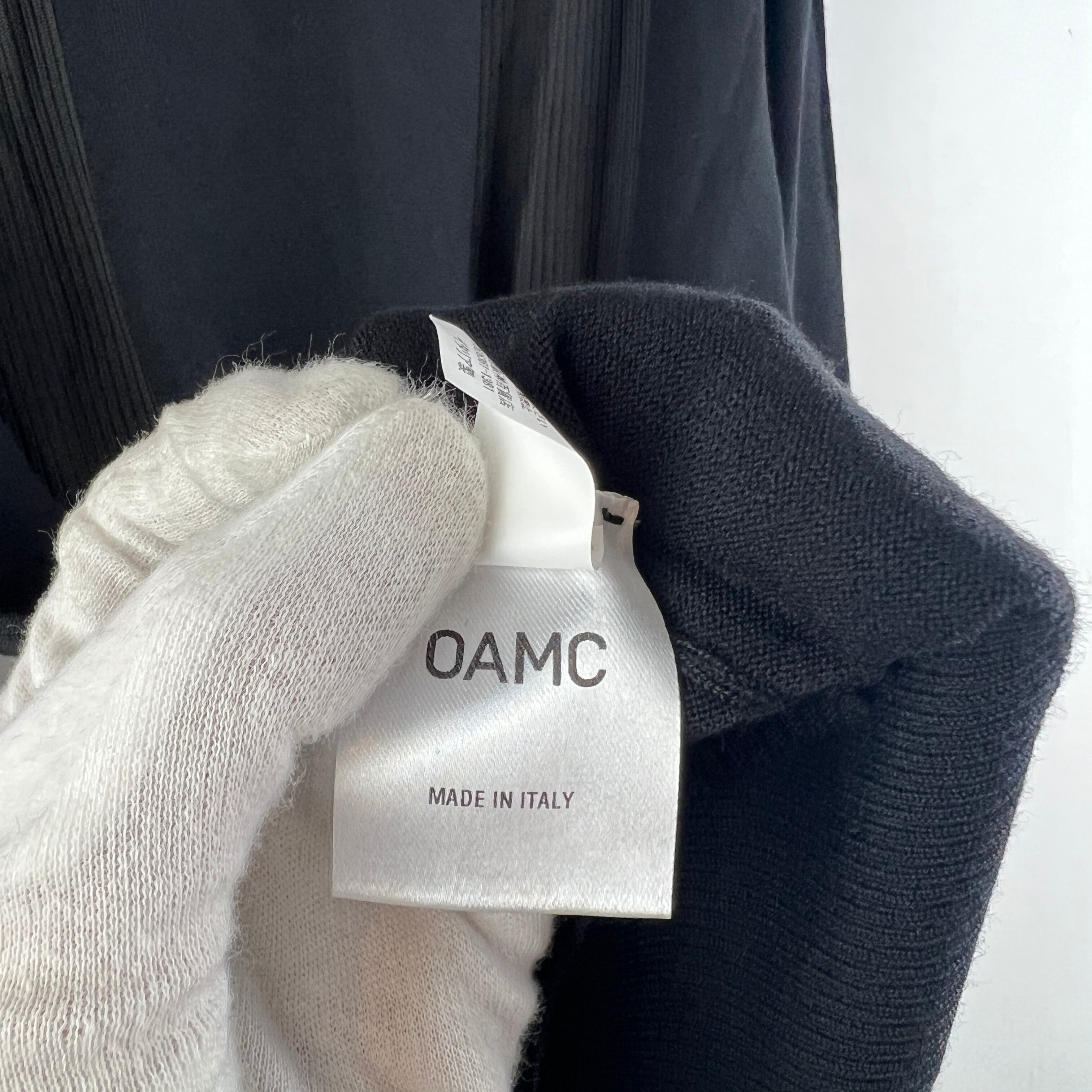 OAMC(オーエーエムシー) Shoulder Patch Back Stripe Longsleeve Knit T Shirt (black)