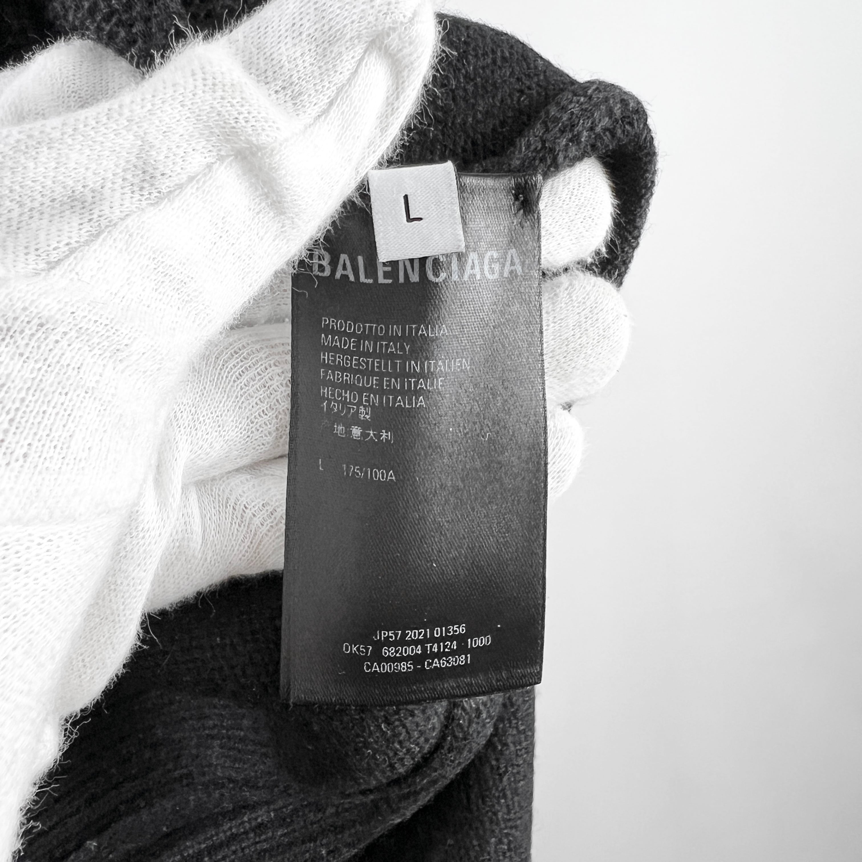 Balenciaga(バレンシアガ) Cashmere Back Logo Wideshoulder Knit Longsleeve T Shirt (black)