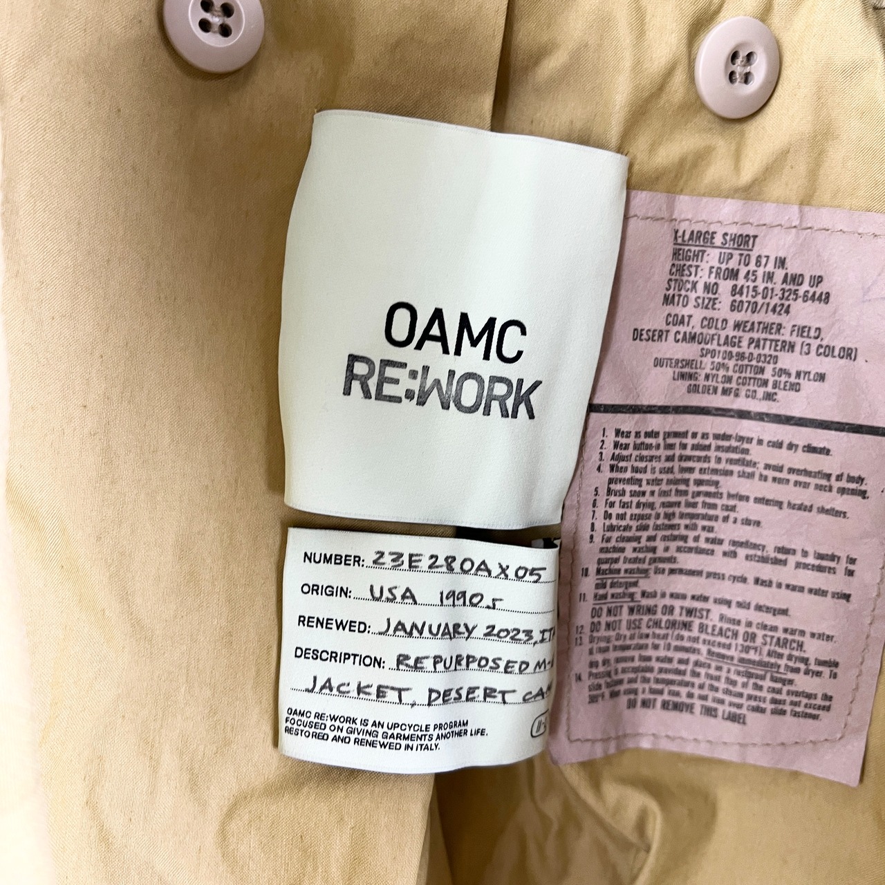 OAMC (オーエーエムシー) RE-WORK M65 Military Jacket 23AW(beige)